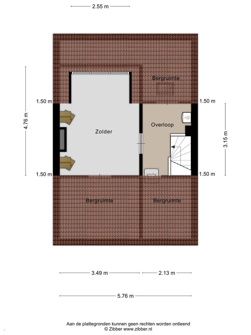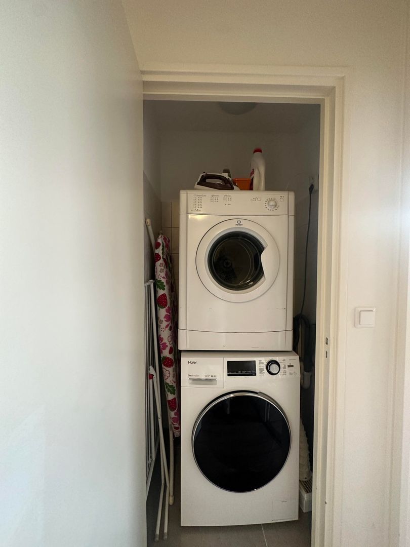 Spacious landing equipped with laminate, a skylight and a connection for the washing machine.
