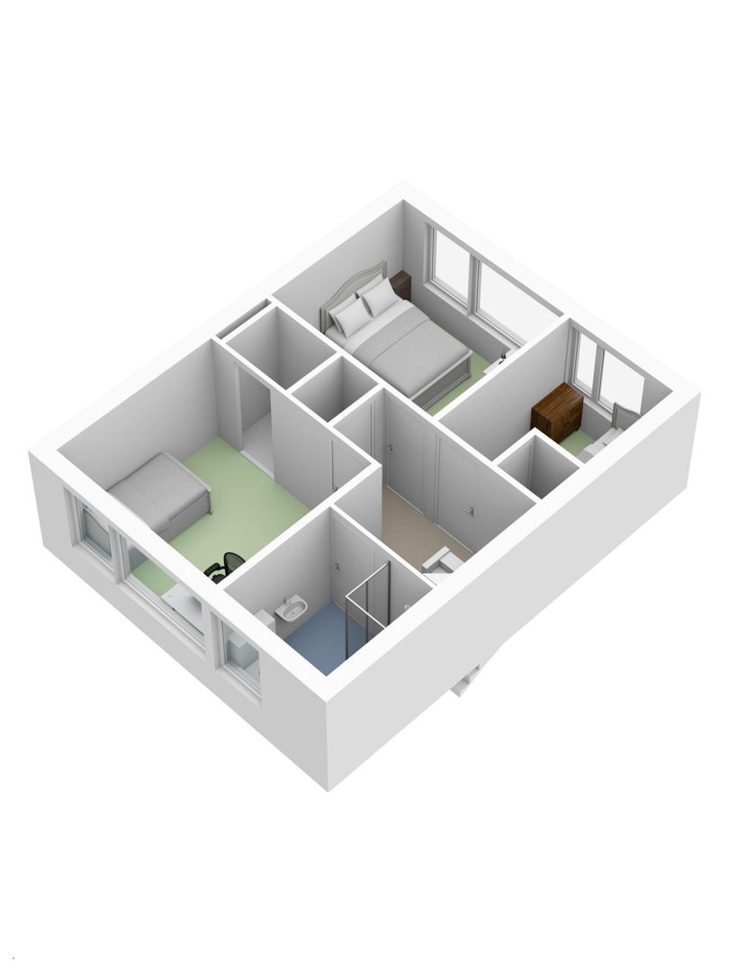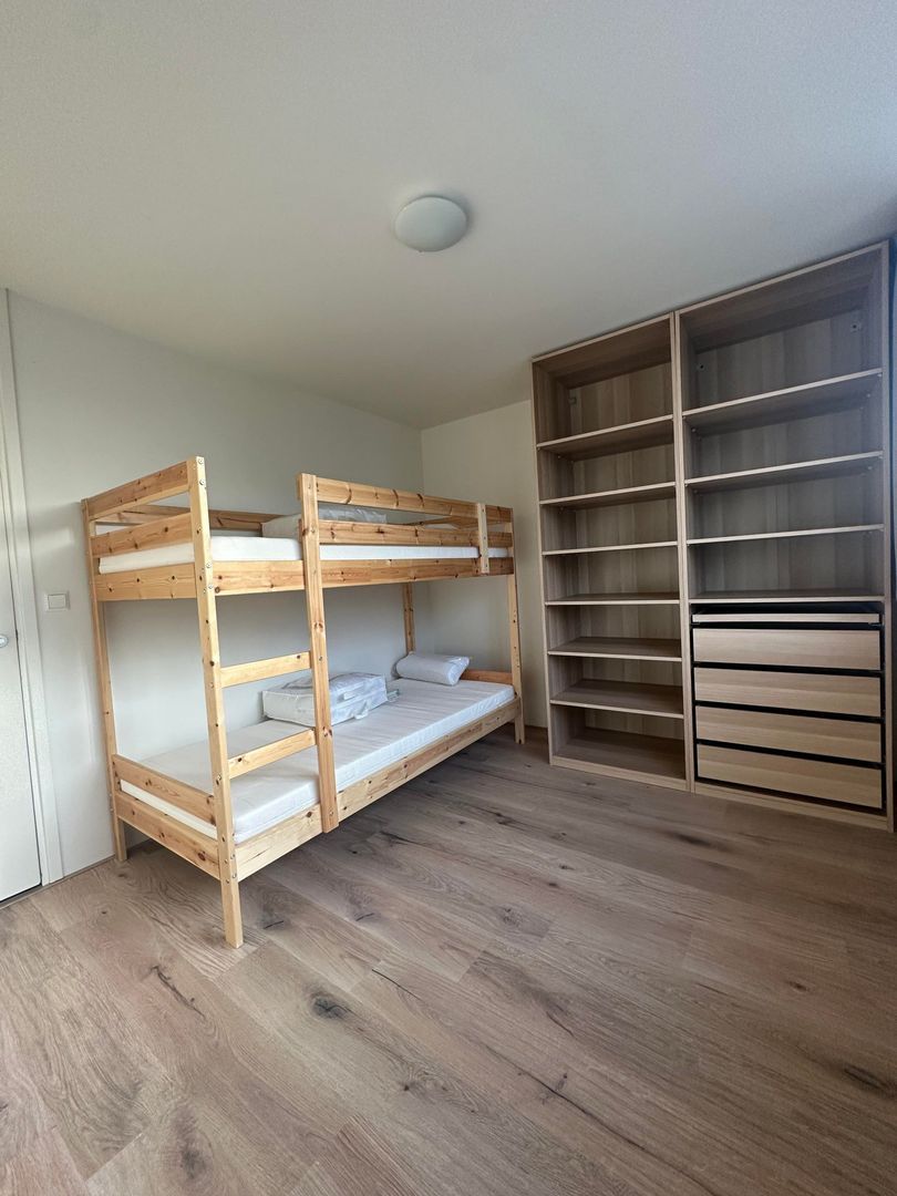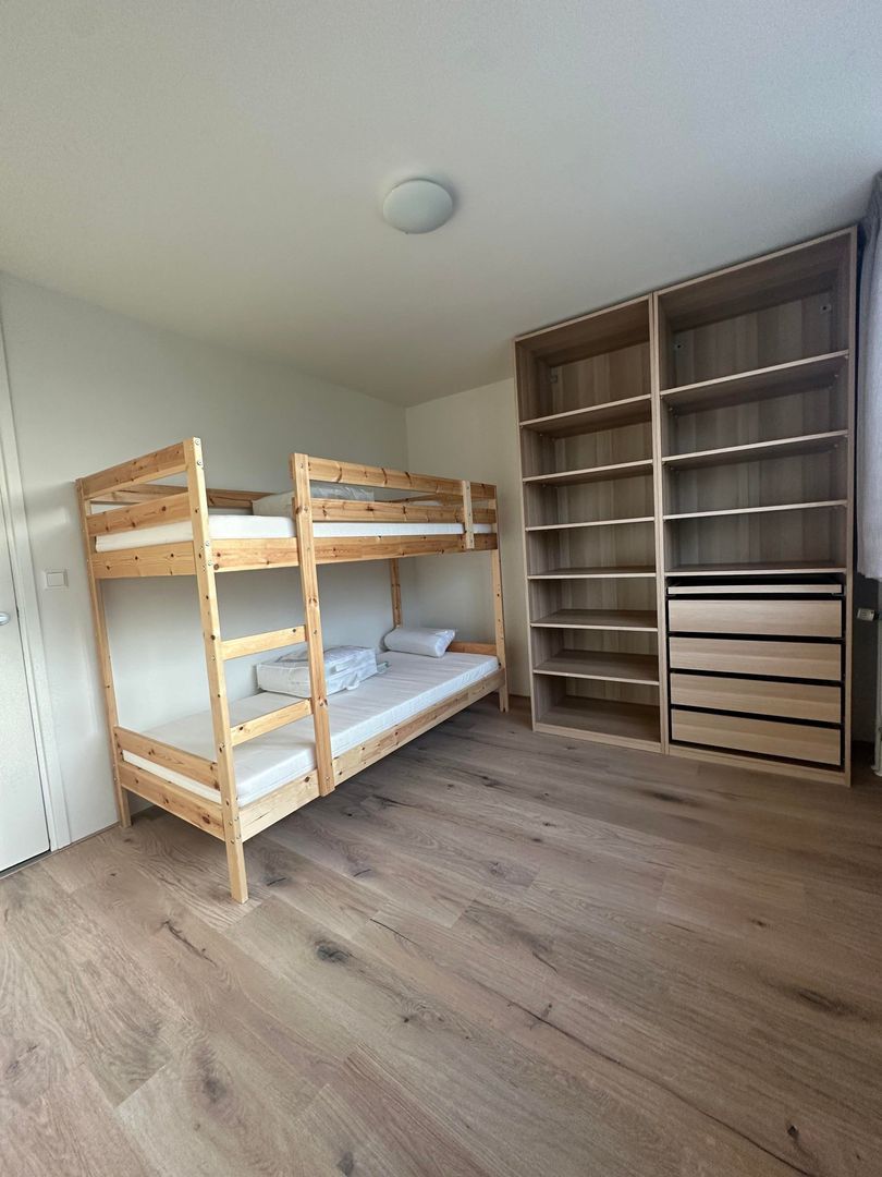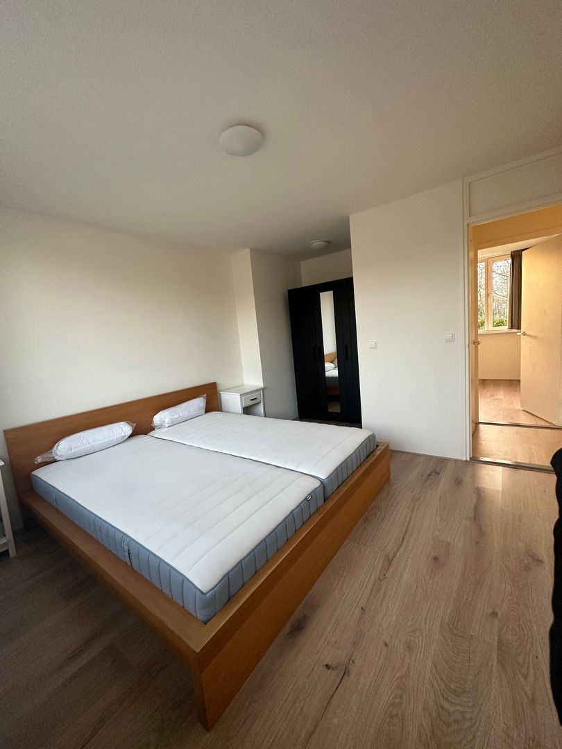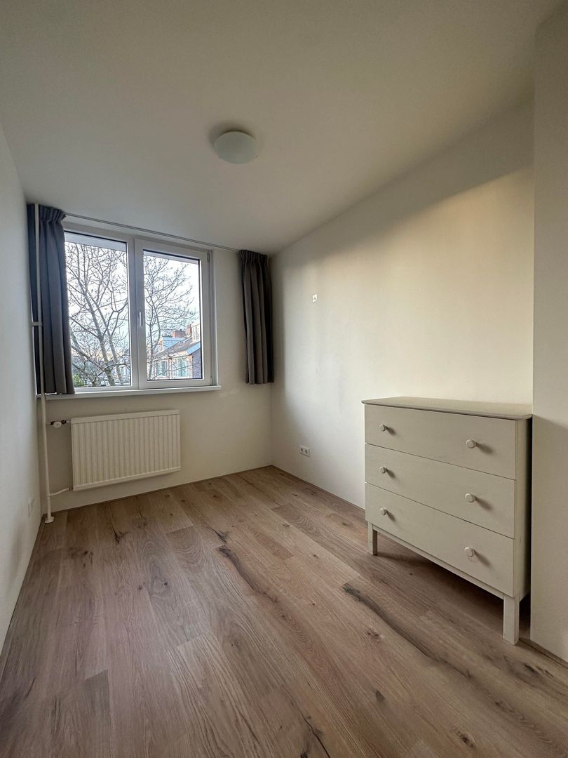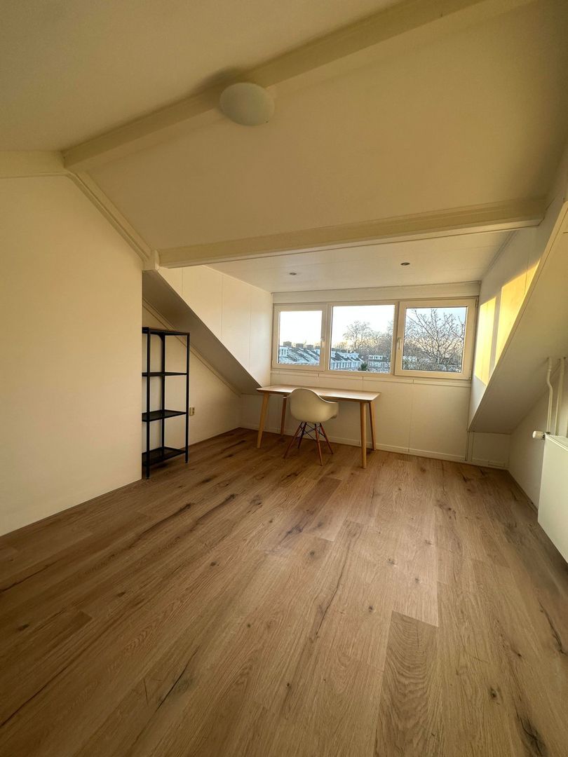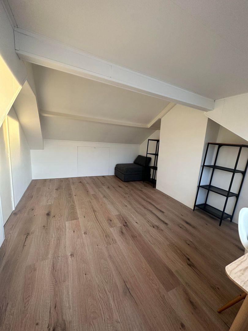 Spacious bedroom with laminate flooring, a dormer, after insulated roof, lots of storage space and fully plastered walls.