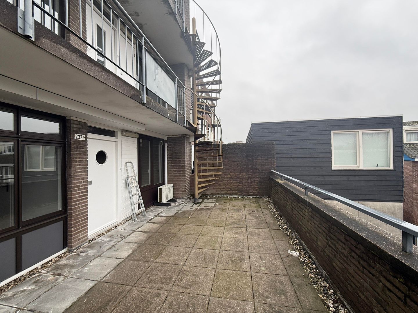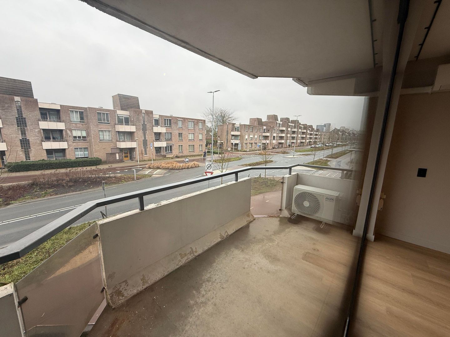 Het ruime balkon strekt zich uit over de volle breedte van het appartement en biedt een prettig uitzicht op de omgeving.