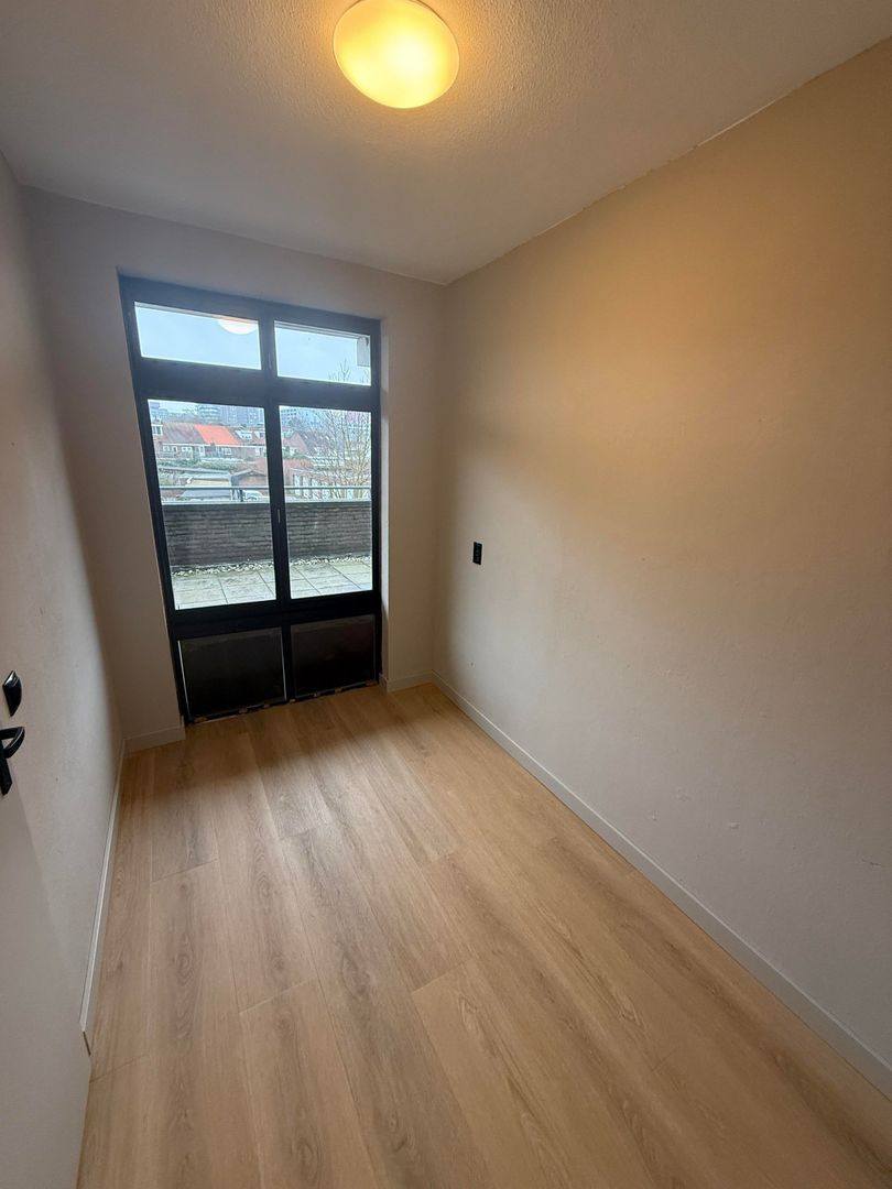 Tweede slaapkamer aan de galerijzijde met pvc vloer en praktische nis voor een kastenwand.