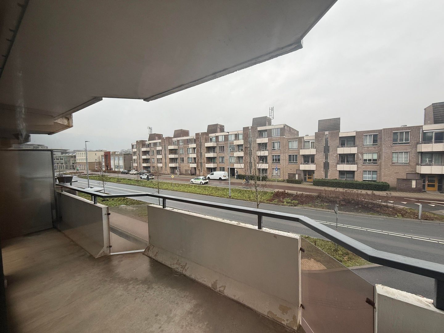 Het ruime balkon strekt zich uit over de volle breedte van het appartement en biedt een prettig uitzicht op de omgeving.