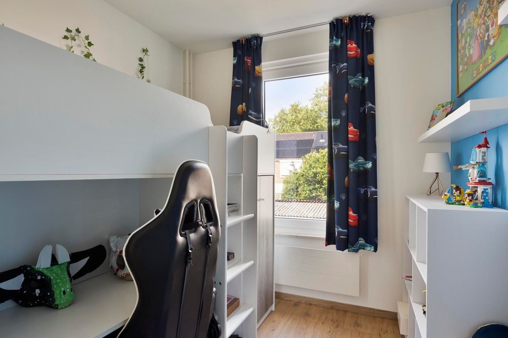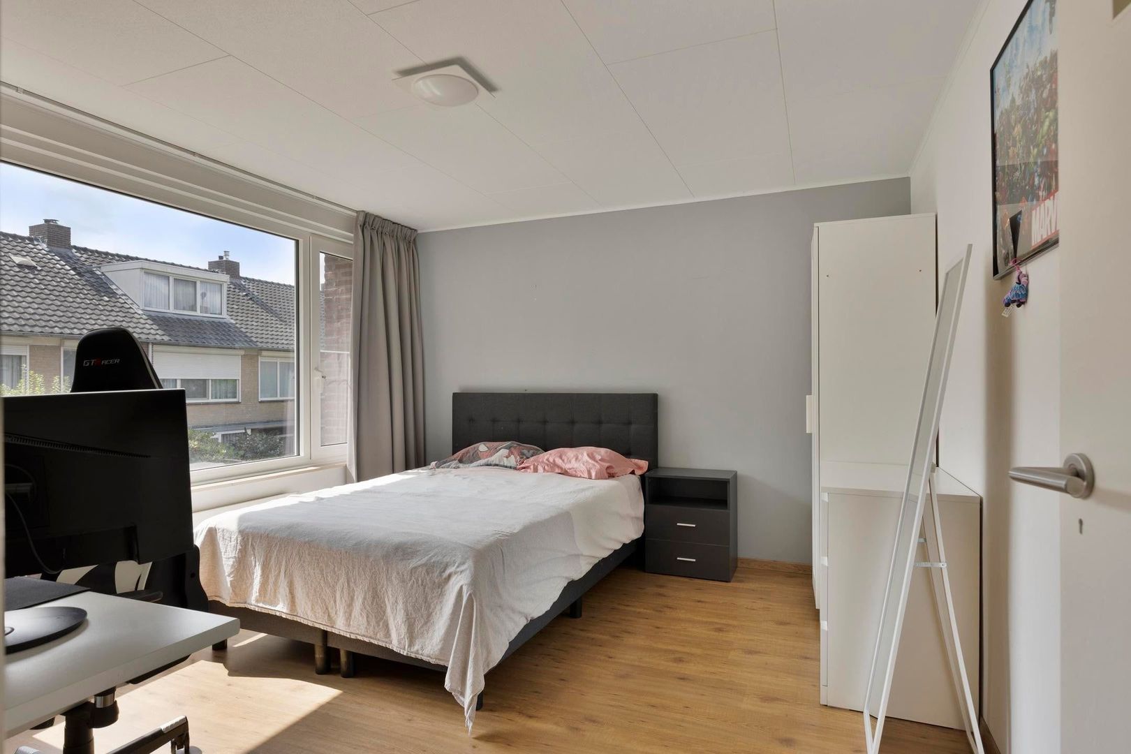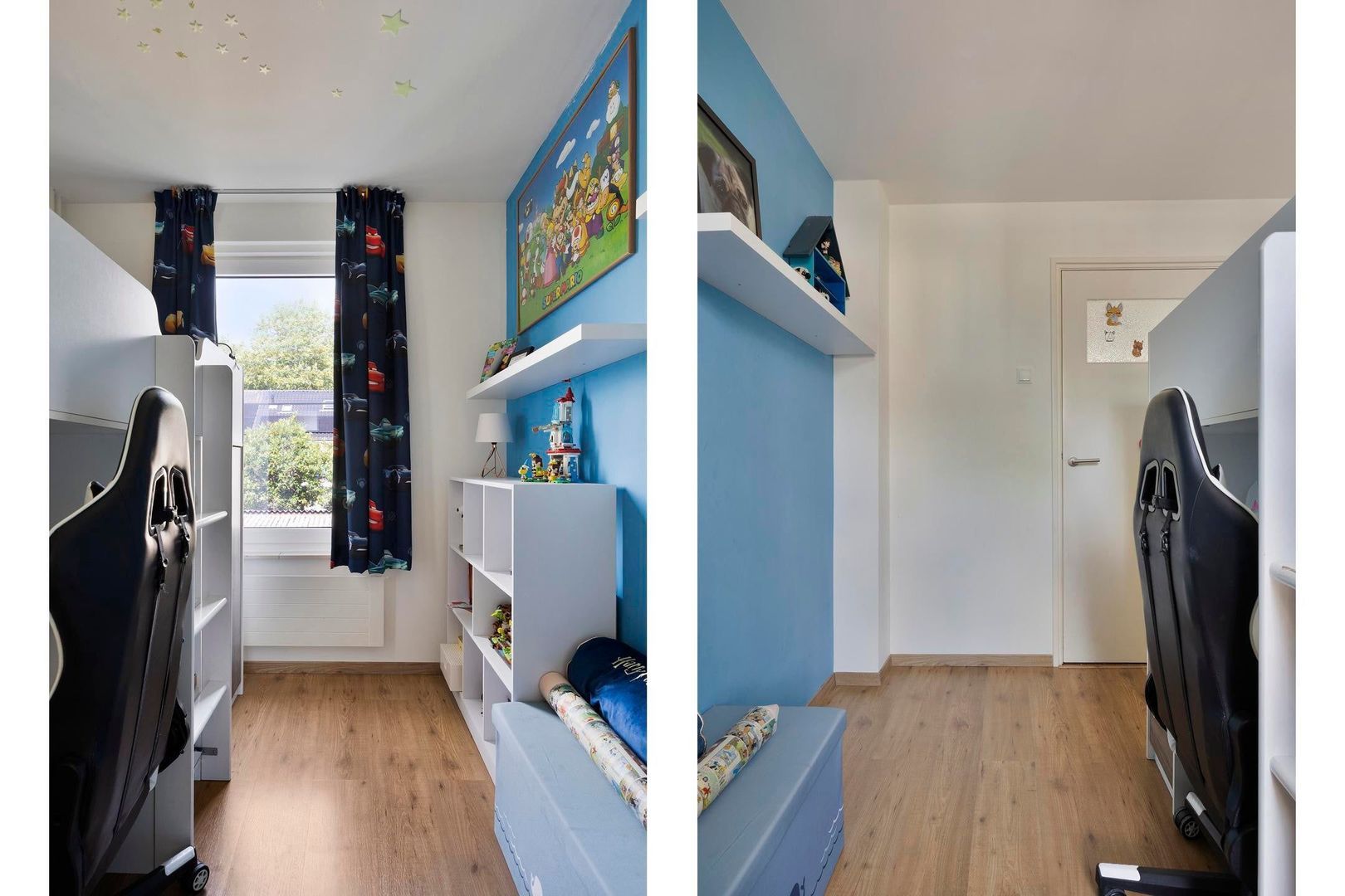Tweede grote slaapkamer aan de voorzijde: met laminaat, kunststof kozijnen, kiepraam en hor.