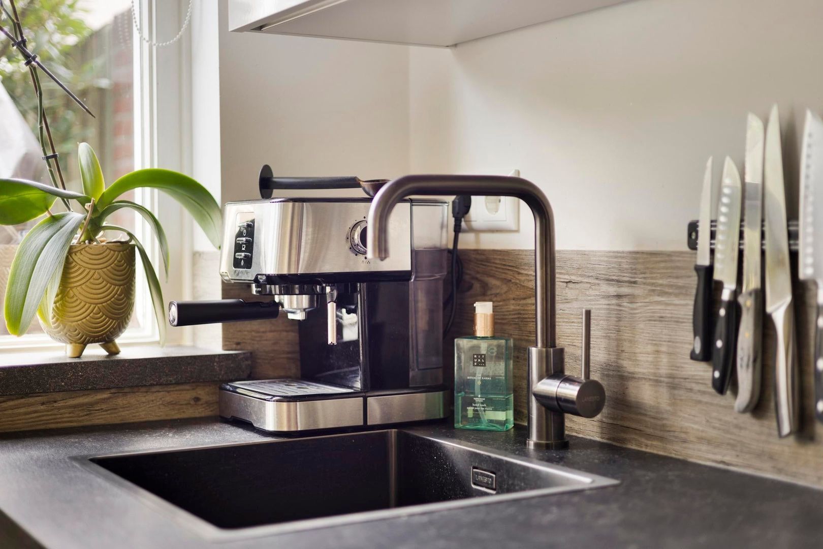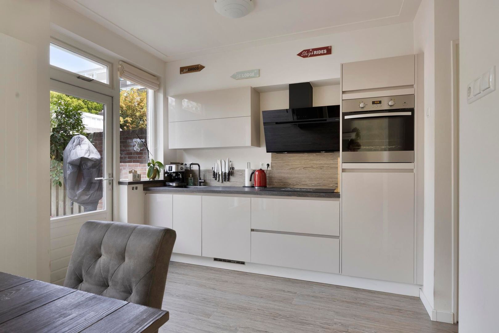 De keuken, geplaatst in 2019, is uitgevoerd in een praktische wandopstelling en voorzien van alle moderne gemakken: koelkast, vaatwasser, oven, magnetron en inductie kookplaat. Er is voldoende bergruimte in de boven- en onderkasten, waardoor alles netjes opgeruimd kan worden.
