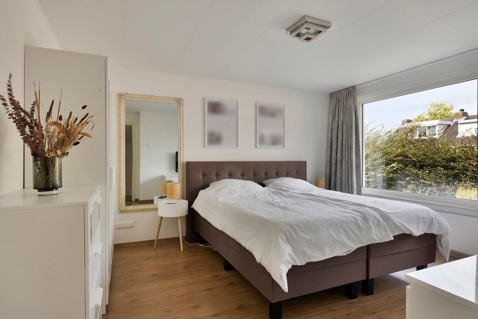 Master bedroom: ruim met laminaat, kunststof kozijnen, kiepraam en hor.