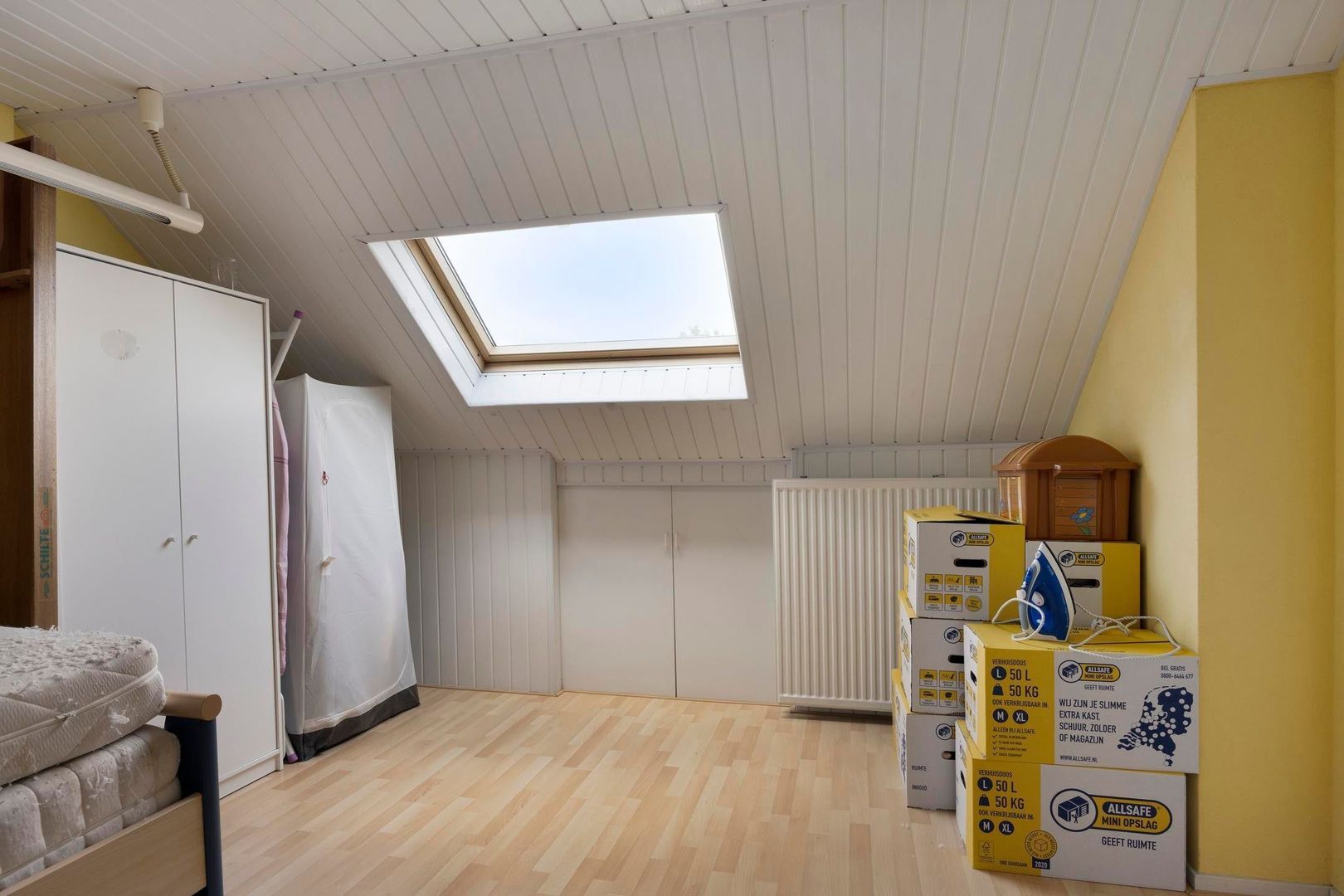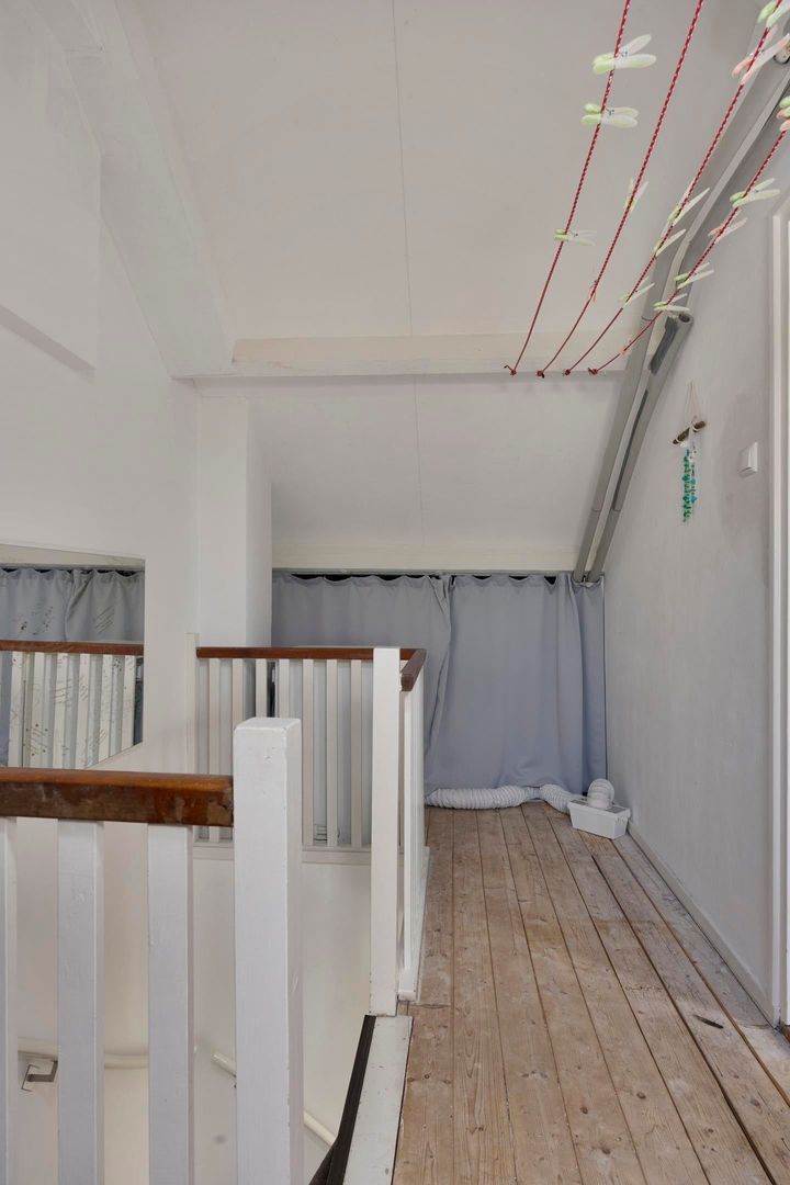 Via een vaste trap bereik je de zolderverdieping, bestaande uit een voorzolder en een aparte zolderkamer. Op de voorzolder is een klein raam aanwezig en de ruimte biedt voldoende opslag. In de voorzolderkamer zijn de cv-ketel en wasmachineaansluiting geplaatst. De zolderkamer is afgewerkt met laminaat en de voorzolder met houten vloer. Een Velux dakraam zorgt voor veel daglicht in de zolderkamer.