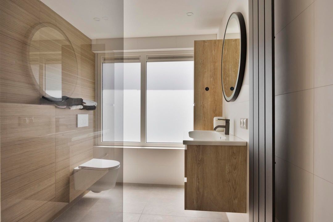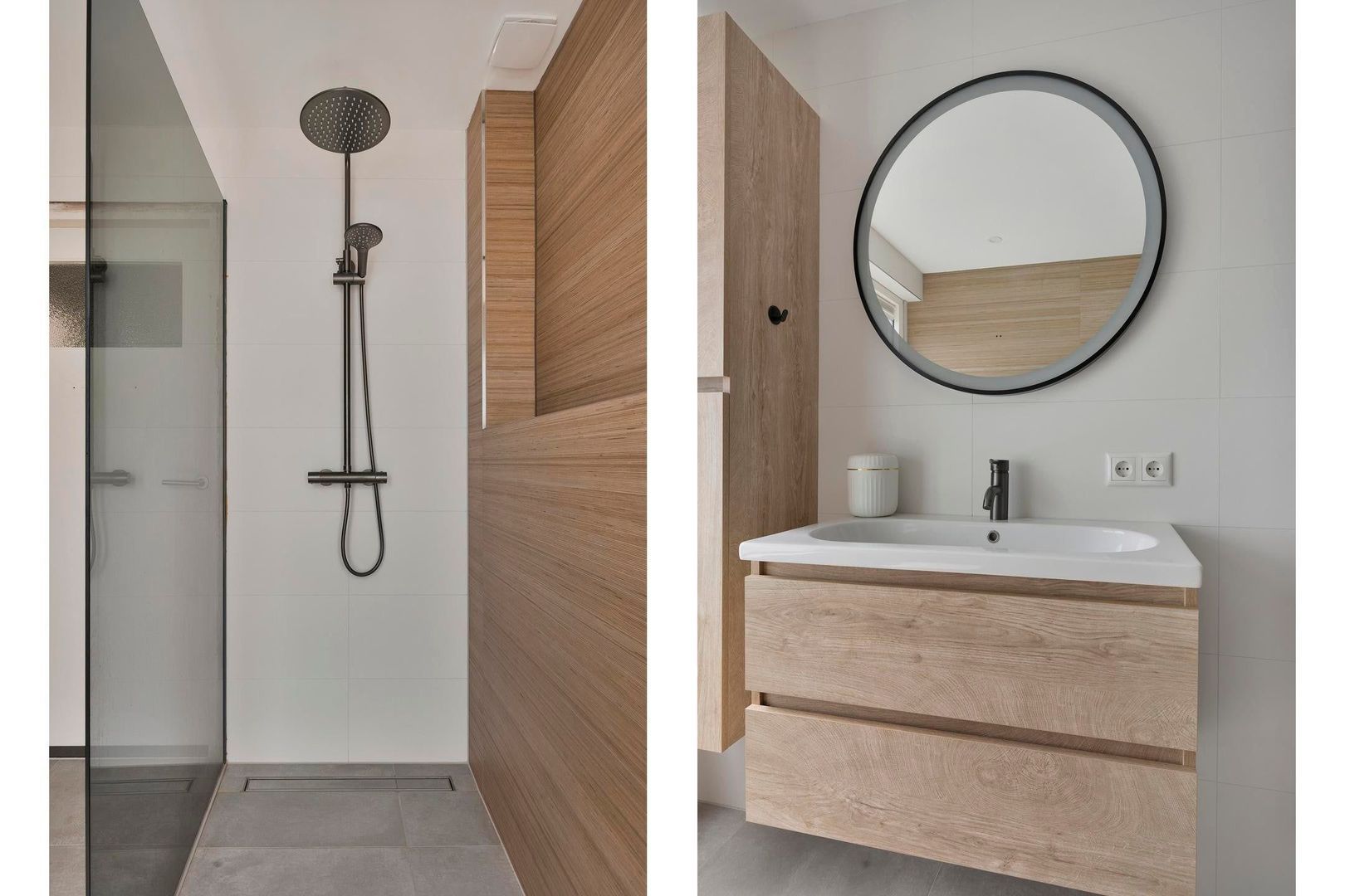 De badkamer is in mei 2025 volledig vernieuwd en beschikt over spotjes, ventilatie, een toilet en een vaste raam met afzuiger.