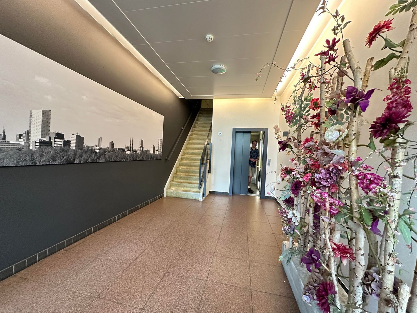 Eerste verdieping, de algemene ruimte op de eerste verdieping is zeer ruim en verzorgd, wat direct een gevoel van luxe en comfort geeft. Een van de twee meterkasten die tot het appartement behoren, bevindt zich in deze algemene ruimte, direct naast de voordeur van het appartement.