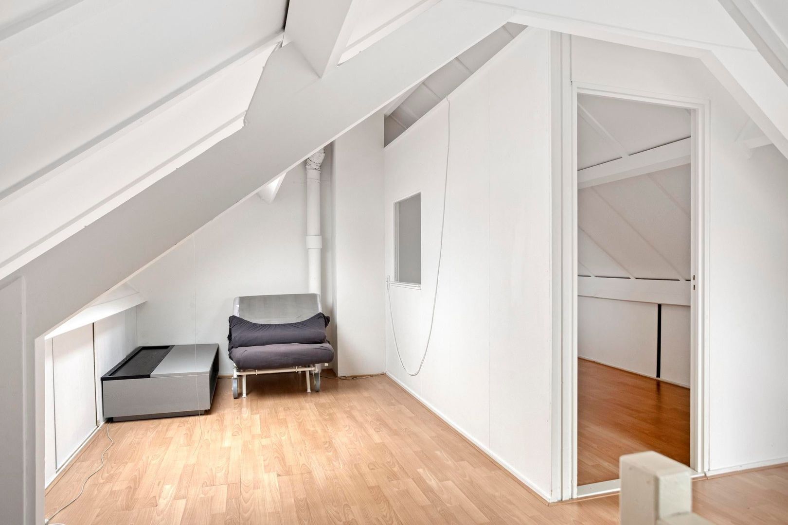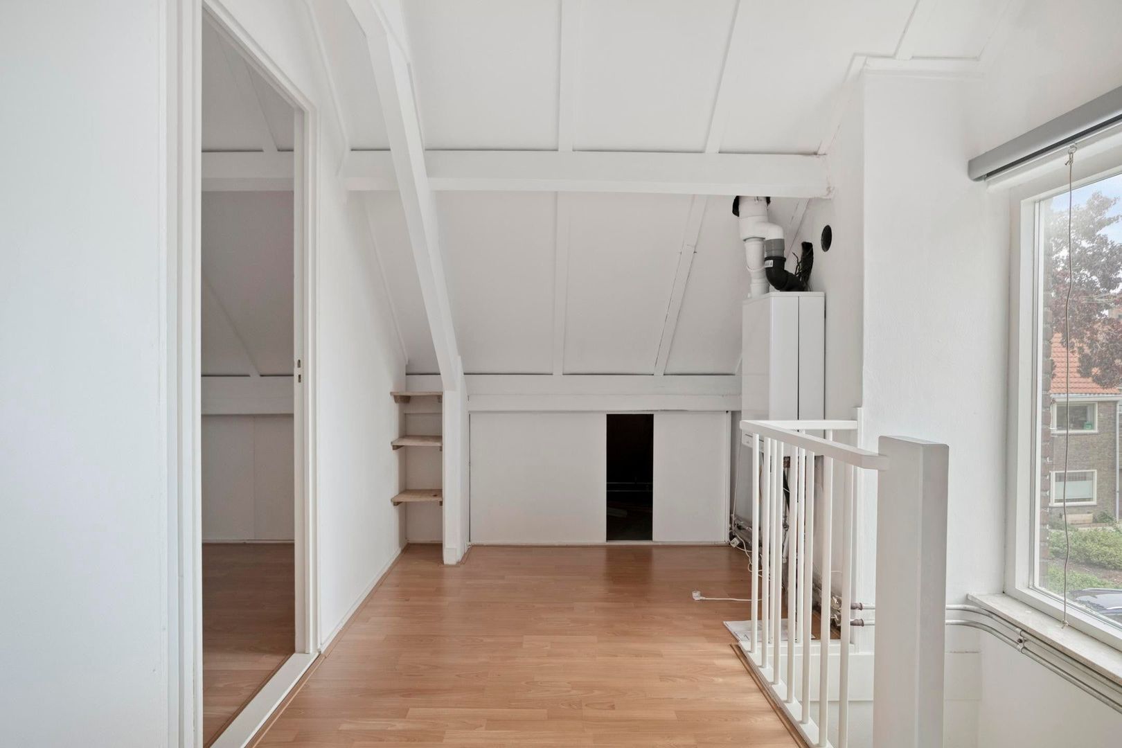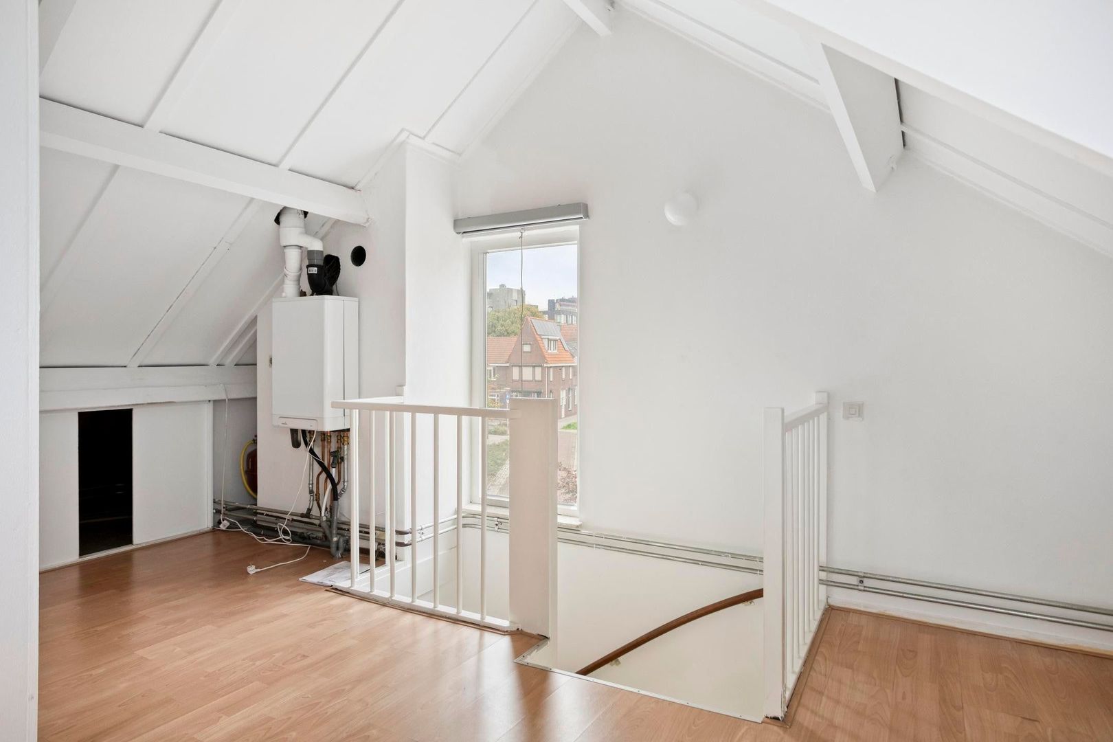 Op de zolder vind je een voorzolder met de opstelling van de cv-ketel en extra bergruimte. De aangrenzende kamer is uitstekend te gebruiken als vierde slaapkamer, werkruimte of hobbykamer.
