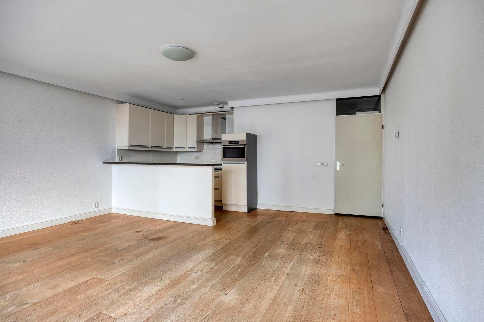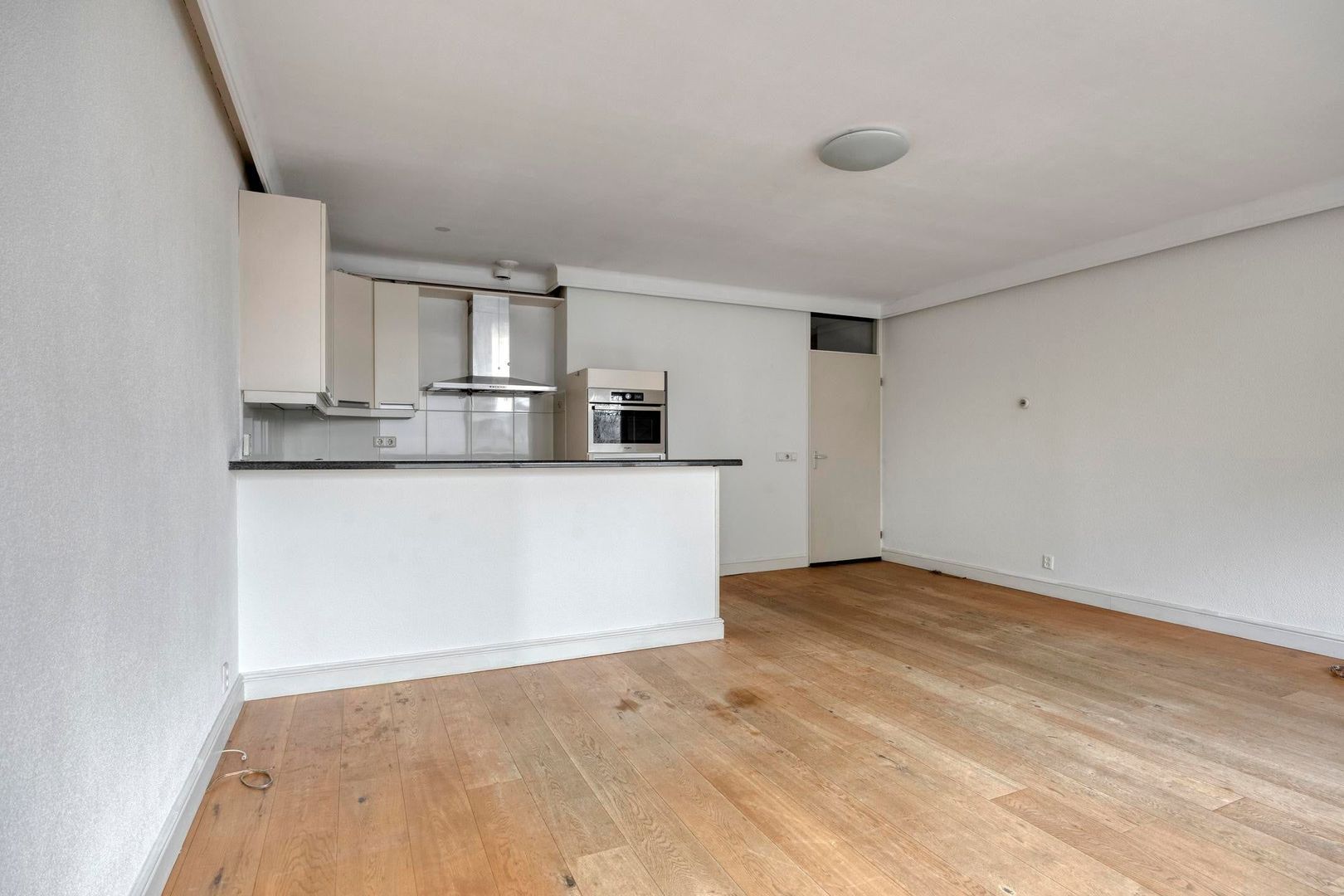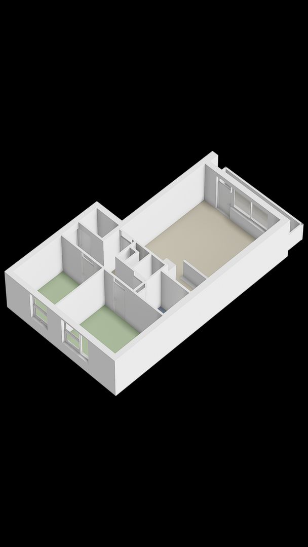 De woonkamer is licht en prettig ingedeeld dankzij de grote raampartijen. Er is voldoende ruimte voor een comfortabele zithoek en een eethoek. De neutrale afwerking zorgt voor een rustige basis waarin je eenvoudig je eigen woonstijl kunt creëren.