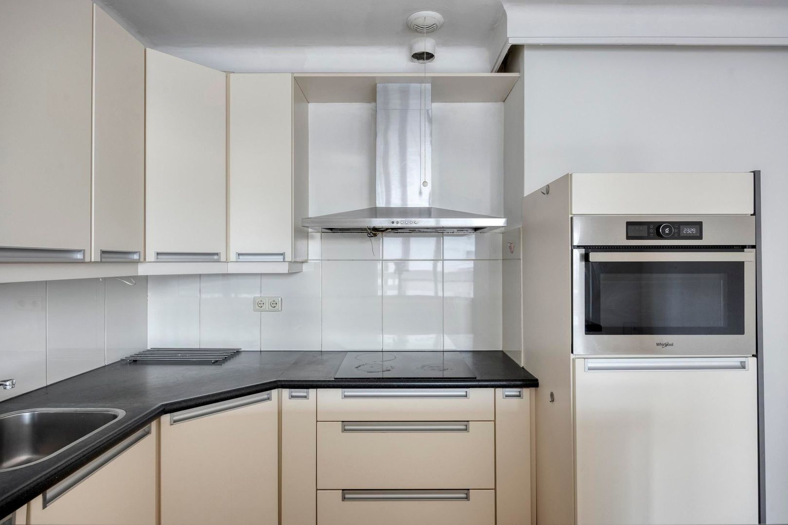 De keuken sluit aan op de woonkamer en is praktisch ingericht met diverse inbouwapparatuur en voldoende kastruimte. Een prettige plek voor zowel dagelijks gebruik als uitgebreid koken.
