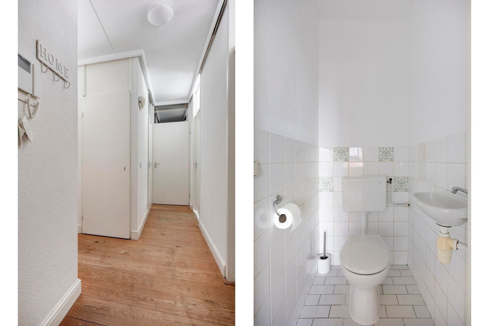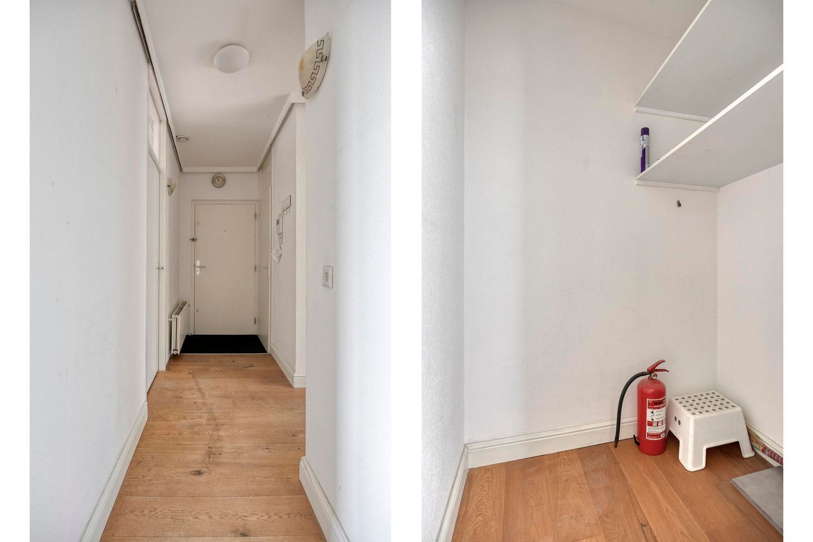 Via de centrale entree bereik je het appartement. De hal is ruim en overzichtelijk en biedt toegang tot alle vertrekken. Hier is voldoende ruimte voor een garderobe en extra opbergmogelijkheden.