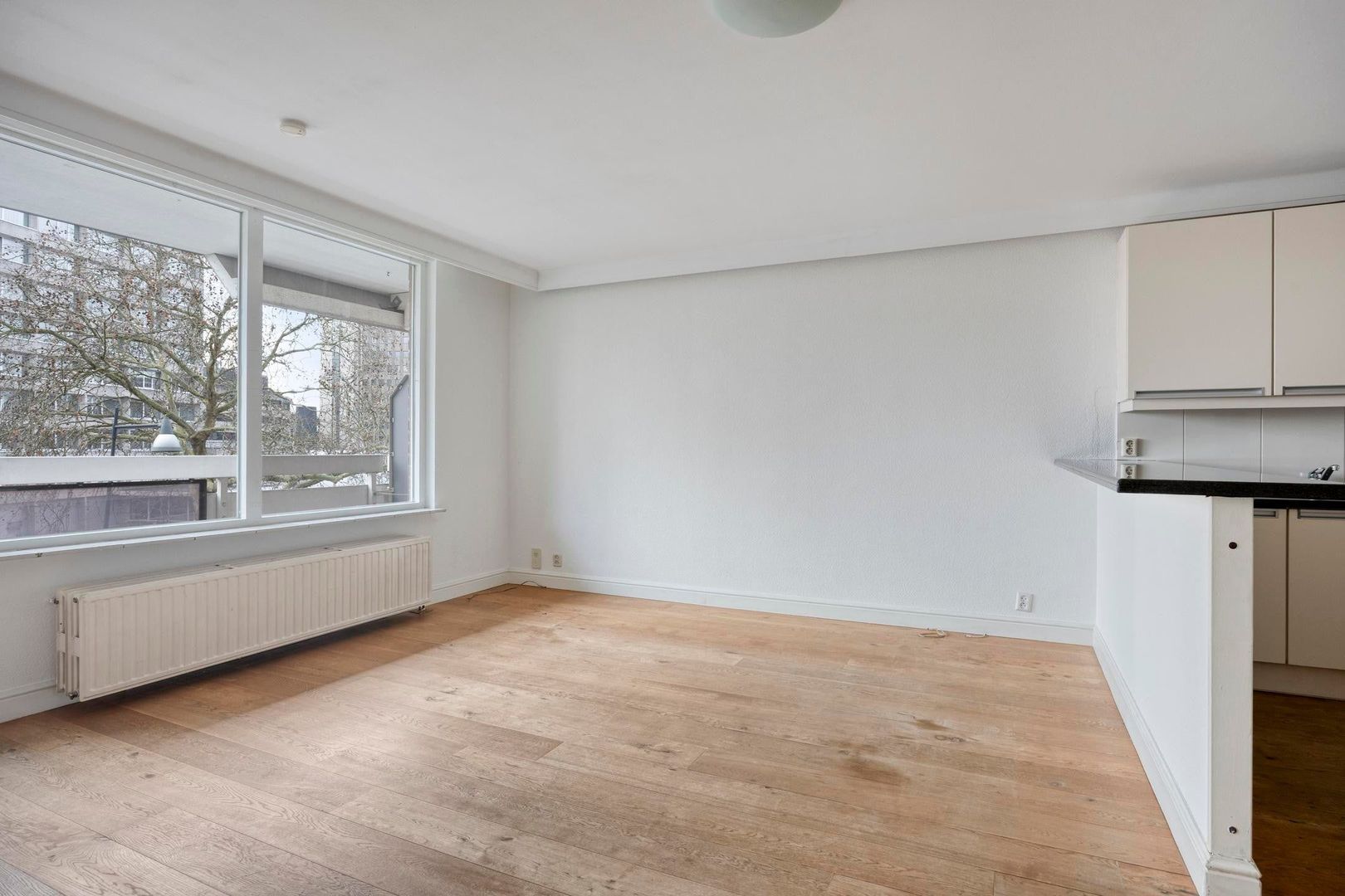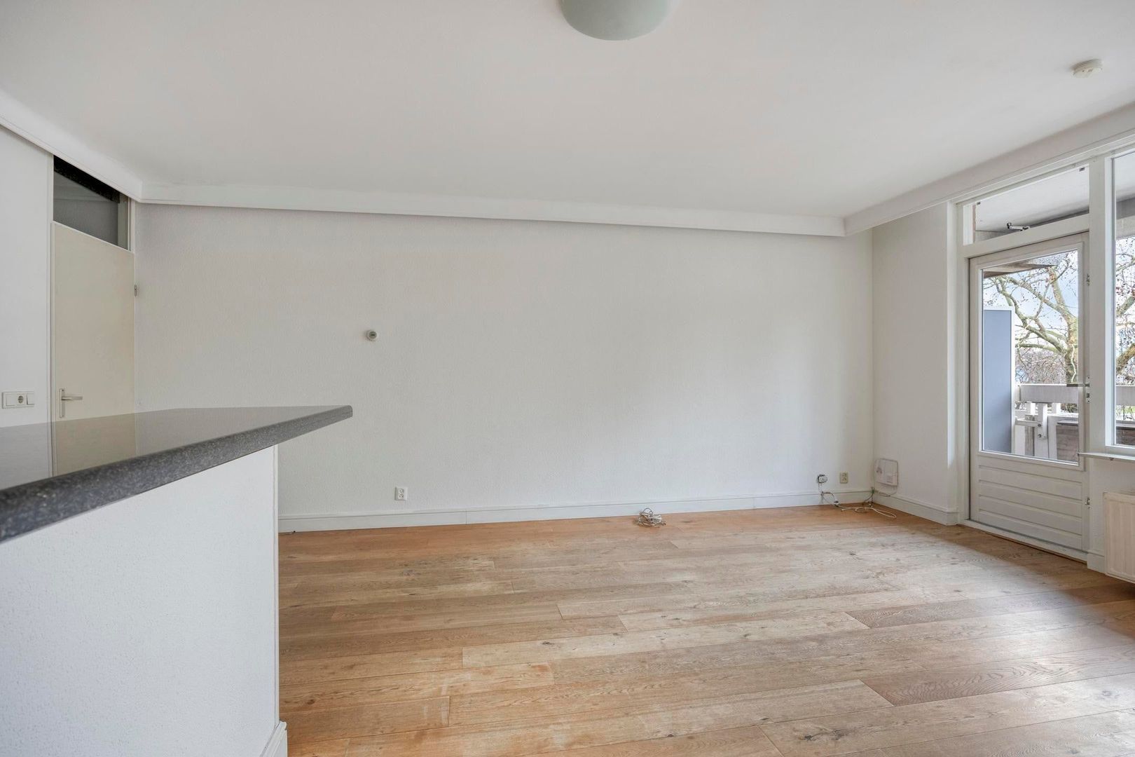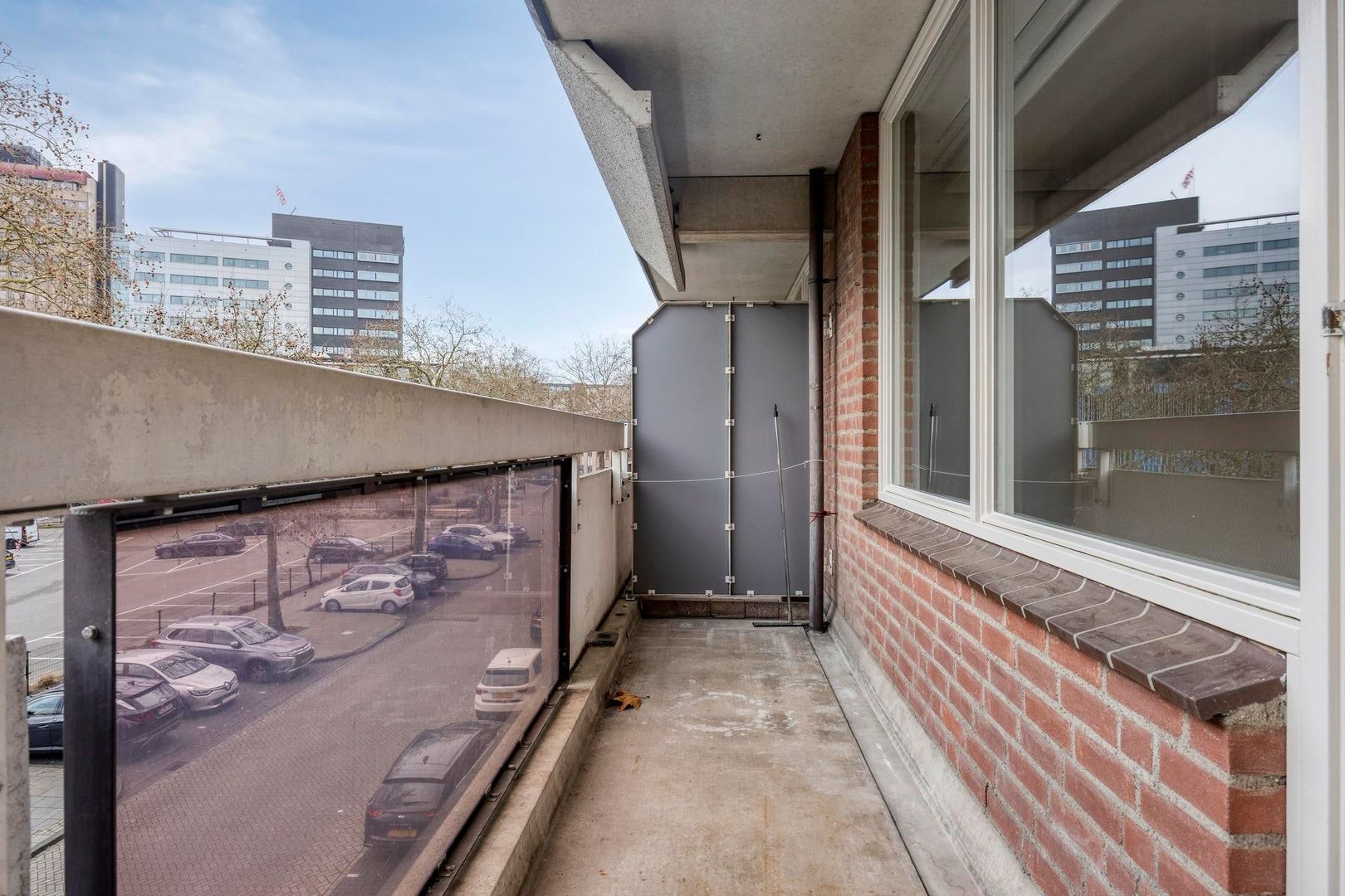 Vanuit de woonkamer heb je toegang tot het balkon. Een fijne buitenruimte met plek voor een zitje, ideaal om te genieten van een kop koffie of een moment van ontspanning.