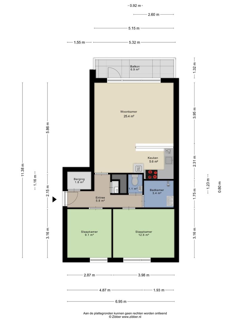 De woning is gemeten volgens de NEN2580-norm. Kleine verschillen in oppervlakten kunnen ontstaan door afrondingen of meetmethodes.