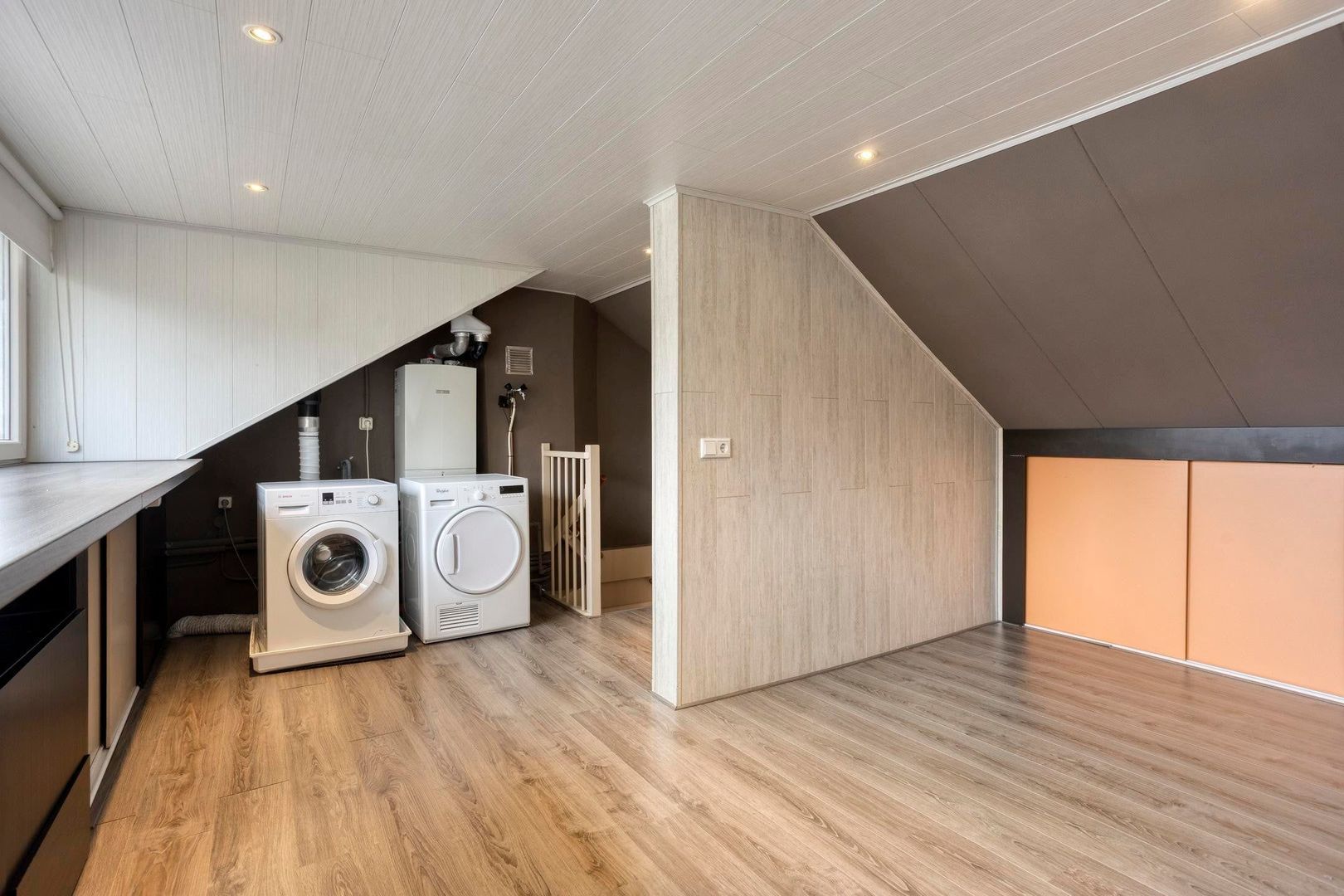 De zolder is bereikbaar via een trap die gedeeltelijk is voorzien van vloerbedekking. Deze verdieping is verrassend ruim en praktisch ingericht, met veel opbergruimte die netjes in de wanden is verwerkt. Dankzij de dakkapel met kunststof kozijnen en HR ++ glas komt er veel natuurlijk licht binnen en voelt de ruimte extra ruim aan. De CV ketel (2011, laatste onderhoud 2026) bevindt zich in de voorzolder.